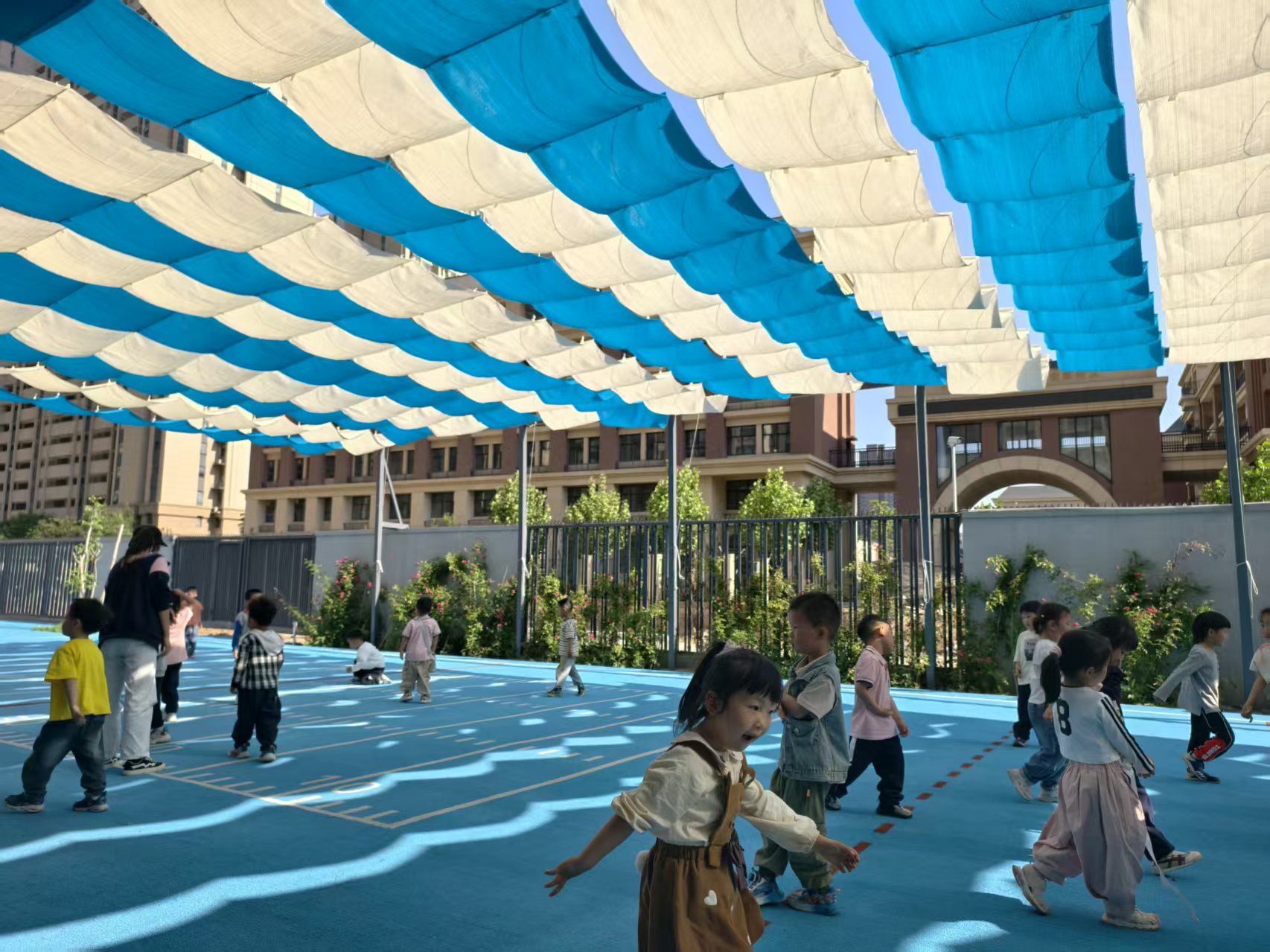 #幼儿园好物 #户外遮阳 #夏日防护 #幼儿园设施 #金丽彩遮阳帘 #园长推荐 #宝宝户外活动 #防晒神器